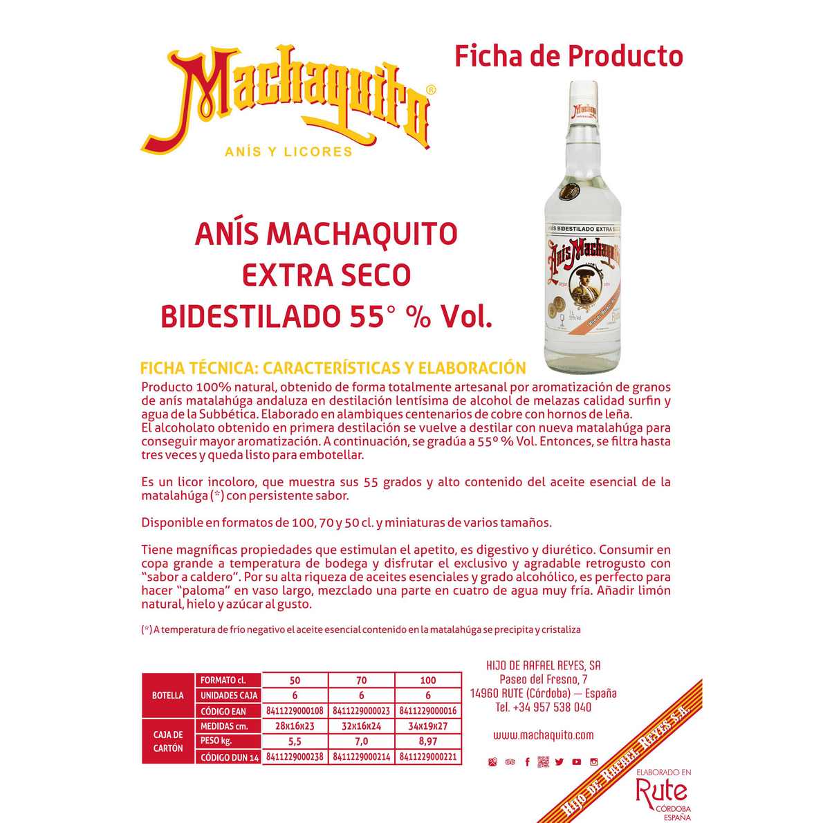 Es un licor incoloro, que muestra sus 55 grados y alto contenido del aceite esencial de la matalahúga (*) con persistente sabor.
